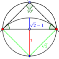 It is easy to see that the height above the base line of the new fingernail is $\sqrt{2}-1$.We now have $$\frac{\mbox{Height old nail}}{\mbox{Height new nail}}=\frac{1}{\sqrt{2}-1}=\sqrt{2}+1.$$ As we mentioned above, this number is known as the silver ratio $\lambda_2$, and the equation above reflects the fact that $$\frac{1}{\lambda_2-2}=\frac{1}{\sqrt{2}-1}=\sqrt{2}+1 =\lambda_2.$$ But there is still more to discover...