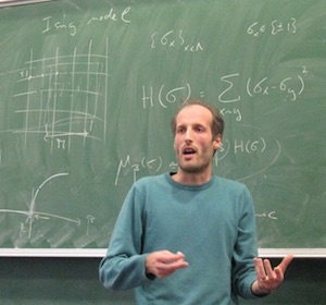 He began with the two guiding principles behind probability. The first is the principle of symmetry – that if the outcomes are equivalent in terms of the mechanism producing them, for example getting heads or tails on a coin toss, then these should have equal probabilities. The second principle is universality – that if a random outcome comes as a combination of many different independent events, then the probability distribution of the outcome very often doesn't depend much on the probabilities of the individual events. An example of this is the central limit theorem, where, no matter what independent quantity you are measuring (for example people's weight, or height), you almost always end up with a normal distribution.