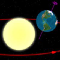 The Earth is not only spinning on its axis, it is simultaneously orbiting the Sun. In the period of time that it takes to spin once, it will also have travelled about 1/366 of the way around its orbit. This means that one complete rotation of the Earth will not quite bring the Sun back to its starting point in the sky, we will have to wait for the Earth to turn for a further 1/366 of a full rotation. This period of time is about 24 hours divided by 366, which is around 24 × 60/360 minutes — almost exactly four minutes. And this extra four minutes gives us our 24 hour day. It is the time between the Sun being due south in the sky and returning again to exactly the same direction due south.