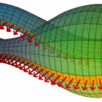 A Klein bottle is formed by joining two sides of a sheet to form a cylinder (tube), then looping the ends of a cylinder back through itself in such a way that the inside (green) and outside (white) of the cylinder are joined. Animation by Konrad Polthier.