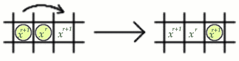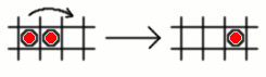 the total value decreases, since $ x^{r+2} < x^{r+1} + x^{r} \hbox{and} 0 < x < 1. $ \par Considering the second possibility, if three squares in a row or column are labelled $x^{r+1}, x^r ,x^{r+1}$, for $r=0,1,2, \dots $, with the first two squares occupied and the third vacant, then when the peg in the first position jumps over the peg in the second position into the vacant third position