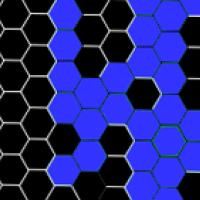 For instance, in the honeycomb example above, which shows only three states separated by two time steps, a cell changes colour if at least four of its neighbours are the opposite colour. You could carry on evolving the grid indefinitely, changing the colours according to the rules at each time step.