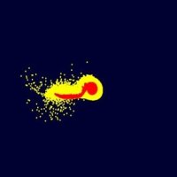 Like any movie, the animations in this article consist of a series of frames merging together to give the impression of fluid motion. The program's job is to calculate the position, direction and speed of each particle at each time step, based on the information from the previous step.