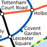 A piece of a geographically accurate map of the London Underground (top, image from Wikimedia commons) and the (roughly) corresponding piece of the network on the actual map (bottom).