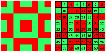 - Construct 8x8 Liki-designs with horizontal and vertical symmetry axes. Use them to build up magic squares.