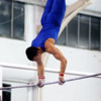 But how large are the forces that the swinging gymnast will experience when he performs a Giant? Clearly, they are largest when his body is vertically below the bar. In this configuration the gymnast feels the downward force of his own weight plus the centrifugal force due to his circular motion. Suppose the gymnast has mass $M$ and moment of inertia $I$ and that the distance from the centre of gravity of his body to the bar is $h$. Then we can relate his energy of rotation when his body is vertically above the bar at the top of the swing to his energy of rotation when vertical at the bottom of the swing. Suppose that his angular velocity at the top is $w$ and at the bottom has increased to $W$. The increase occurs because his centre of mass falls from a height $h$ above the bar to a height $h$ below the bar and the consequent loss of potential energy, $2Mgh,$ increases the rotational energy, and hence his angular velocity, $W$. The energy conservation between the top and bottom of the swing is described by $$\mbox{Rotational energy at the bottom = Rotational energy at the top + Potential Energy lost}$$ $$\frac{1}{2}IW^2=\frac{1}{2}Iw^2+2Mgh.$$ At the bottom of the swing, the force on the gymnast is the sum of his weight $Mg$ and the centrifugal force created by the rotation of his centre of gravity in a circle of radius $h$ at an angular velocity of $W$, which is $MhW^2;$ so adding these together we have: $$\mbox{Maximum force felt by the gymnast} = Mg + MhW^2 = Mg + 4M^2gh^2/I.$$ If we write the moment of inertia of the gymnast as $I = Mk^2$ where $k$ is called the radius of gyration, then the total force becomes $$\mbox{Total force felt by the gymnast }= Mg(1 + 4h^2/k^2 +hw^2/g).$$