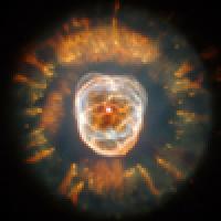 We do not only see stars forming, but we see them dying. The image below shows the Eskimo Nebula, whose gas composed the outer layers of a sun-like star only 10,000 years ago. This is how our Sun will look like in 6 billion years.