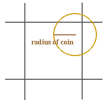 To cover a corner, the coin's centre must be less than the length of its radius away from the corner.