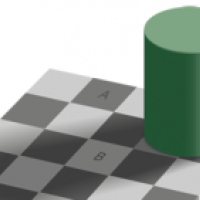 It may surprise you to know that in fact they are equally bright! Our human brains compensate for the shadow of the cylinder by making square B appear to be brighter than square A. This is how humans see things. However a computer will see this differently, as from a simple measurement squares A and B are exactly as bright as each other.